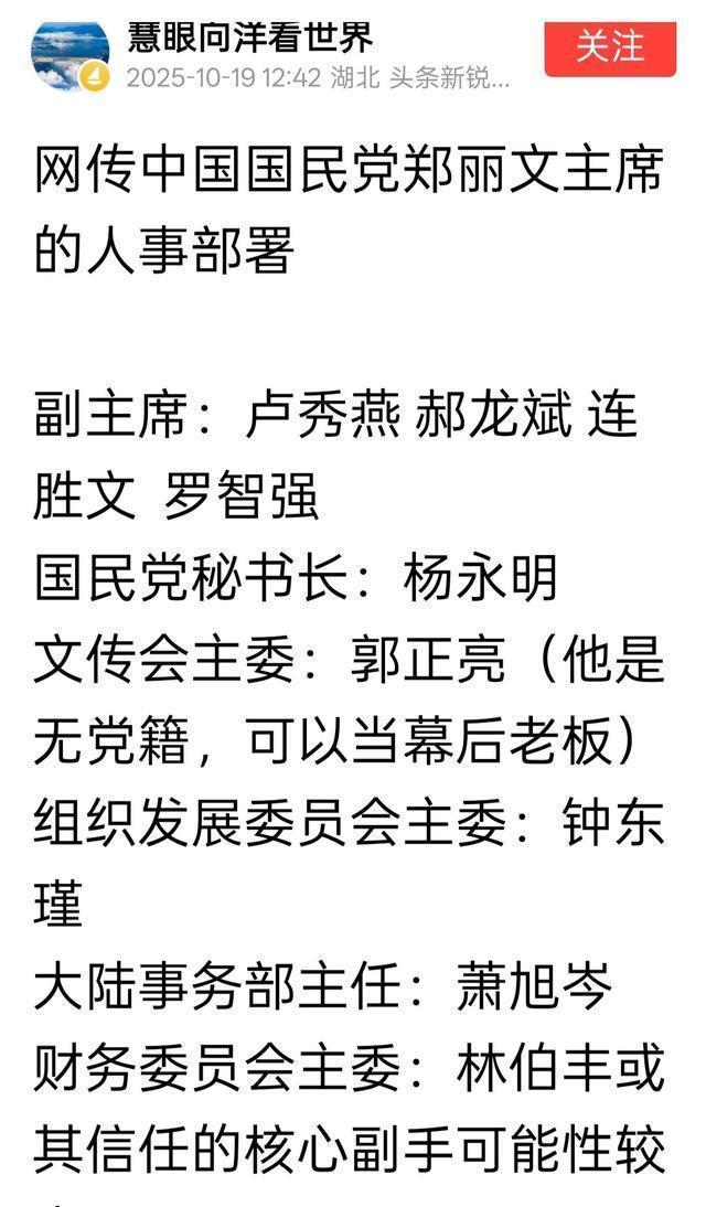 随即,网上关于国民党主席人事任命谣言四起,我列举几例: 这位也是听网传: