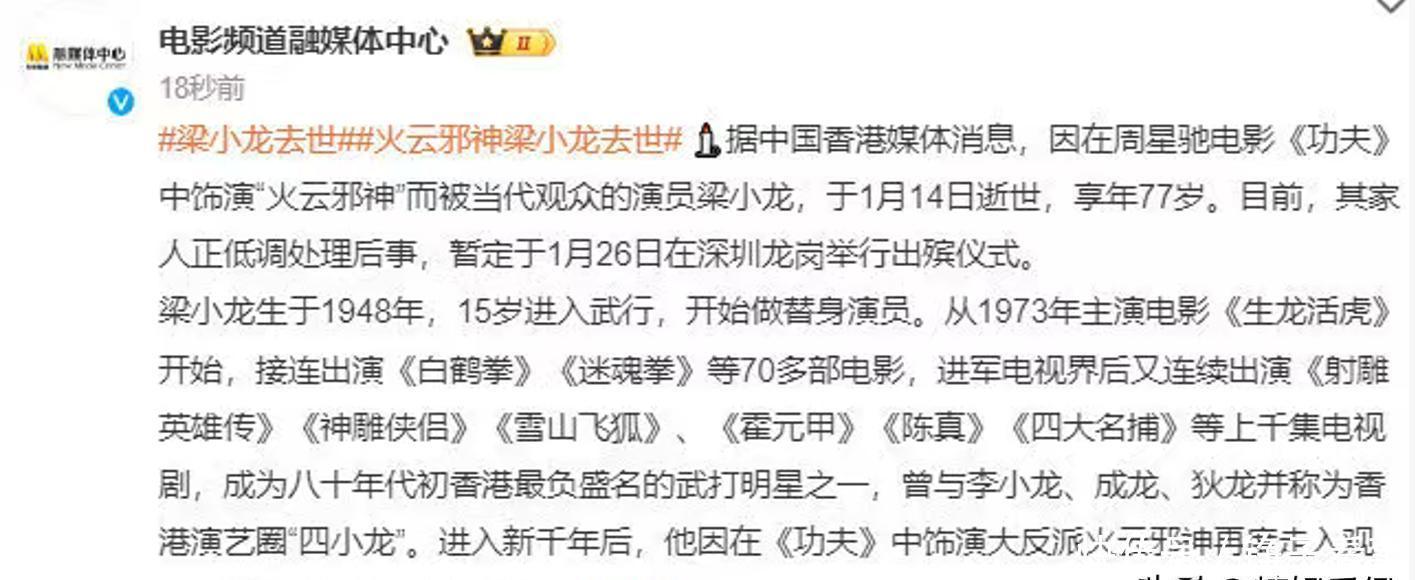 正因如此,大家才更难接受这个突如其来的消息。前几天还在为孩子发声,转眼人就没了?而且账号持续更新,时间线对不上,难免让人起疑。到底发生了什么?身体一直好好的,怎么突然就走了? 眼下真相还没完全浮出水面,但无论如何,这位曾用拳头和正气打动一代人的老演员,值得一句真心的告别:梁小龙老师,一路走好。
